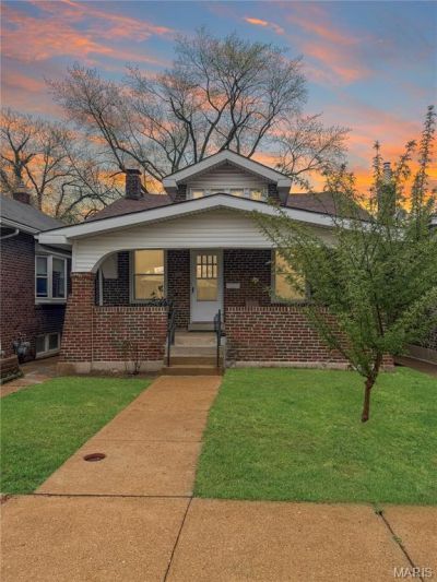 Welcome to this charming South City bungalow, where a welcoming front porch sets the tone for relaxing mornings and evenings. Inside, you'll find a bright living area complemented by a separate dining room, all accented by beautifully refinished hardwood floors throughout. The eat-in kitchen offers updated backsplash, granite countertops, and ample storage space. The main level features one comfortable bedroom and an updated full hall bath with a shower/tub combo. Upstairs provides excellent additional storage options, while the full, unfinished basement is ready for your personal touch. Step outside to enjoy the backyard and convenient off-street parking with a dedicated parking pad. Ideally located near Maplewood, you'll love the easy access to shopping, dining, major highways, and more!